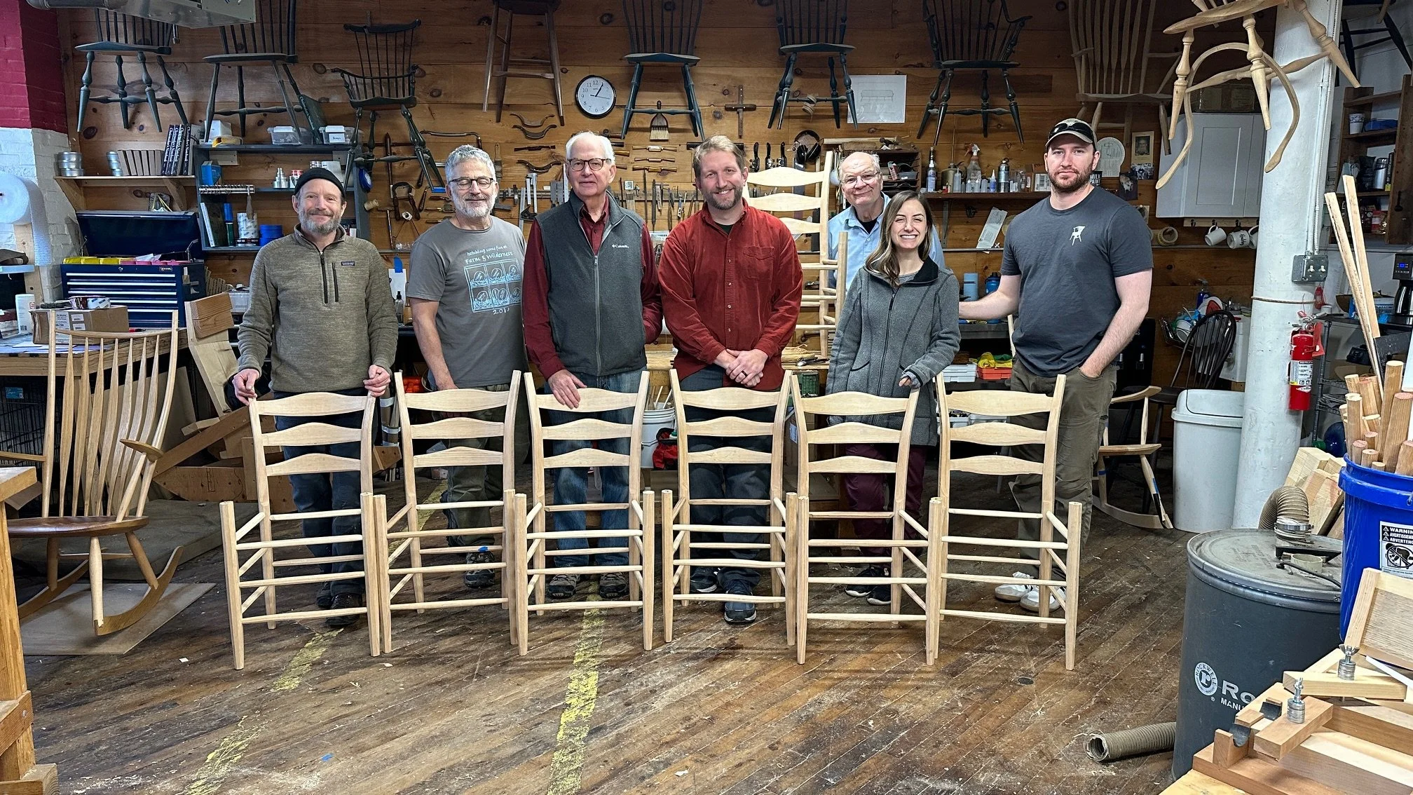 It’s the day after Thanksgiving and I’m just starting to think through the week at Peter Galbert’s Chair Shop in the Mill Buildings of Rollinsford, NH. Six students worked for six days on a greenwood ladderback chair. Pete’s usually making Windsor chairs in his space, which made it an ideal space to build the ladderbacks.
